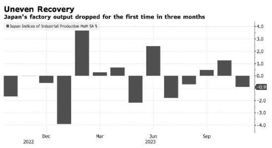 日本11月份工场产出减少,而零卖商销售加多,这标明日本经济从夏日阑珊中复苏的历程并不奏凯。日本央行正试图评估日本何时准备好进行2007年以来的初次加息。日本产业经济省,由于汽车、信息本事建筑和通用机械的产量着落,日本11月季调后工业产出初值环比小幅着落0.9%,对消了芯片制造建筑的增长,预期为-1.4%,前值为1.3%。日本11月季调后零卖销售月率为1%,预期为0.5%,前值为1.6%。